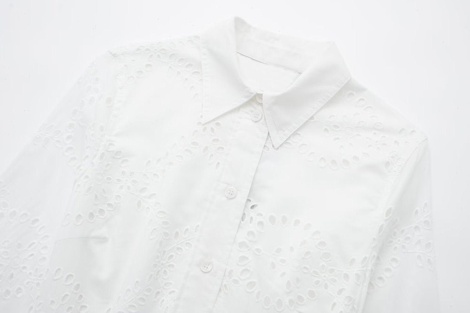 Caroline incarne l’équilibre parfait entre structure et délicatesse. Sa coupe chemisier allongée, soulignée par une ceinture à nouer, dessine une silhouette fluide et affirmée. Les broderies ajourées laissent passer la lumière sur un coton doux, évoquant les fins d’après-midi dorées, les souvenirs de vacances et les départs spontanés. Une robe qu’on enfile pour se sentir bien, belle, libre.
